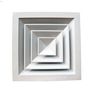 方形散流器是空調或通風的送風口,就是讓出風口出風方向分成多向流動,一般用在大廳等大面積地方的送風口設置,以便新風分布均勻。
